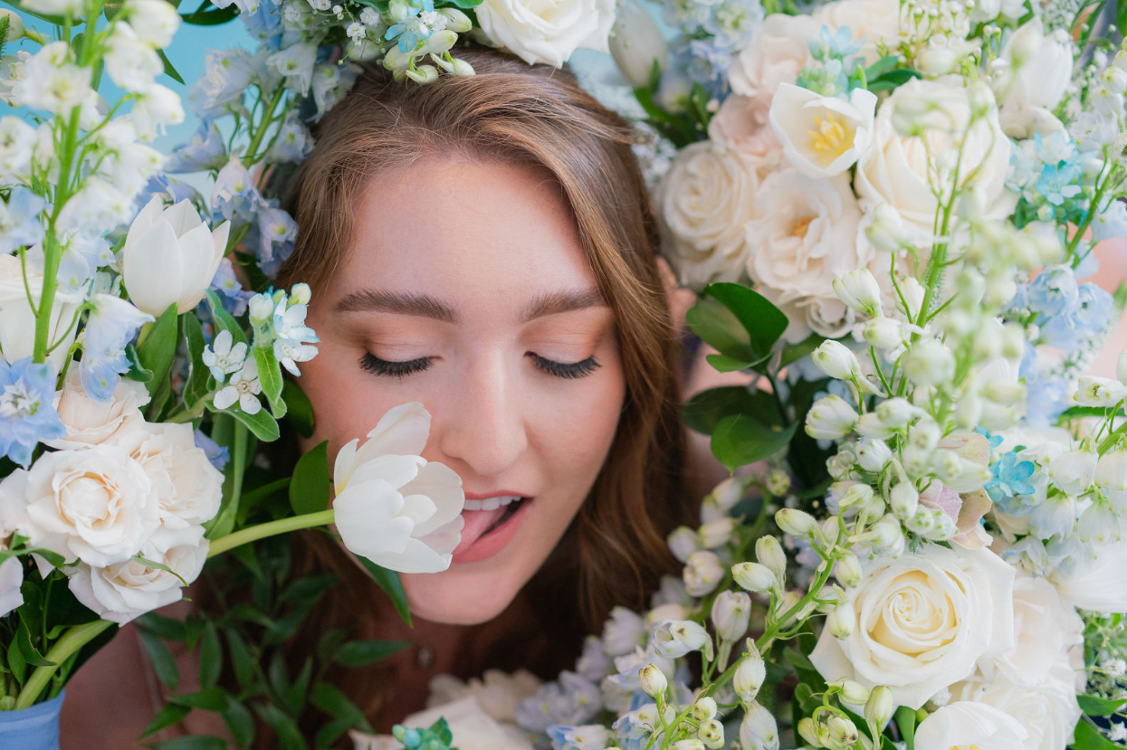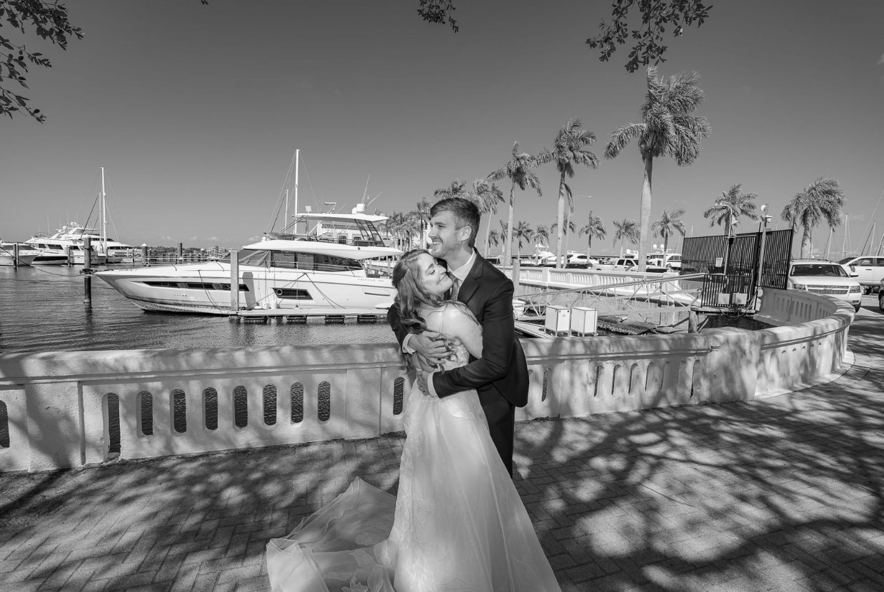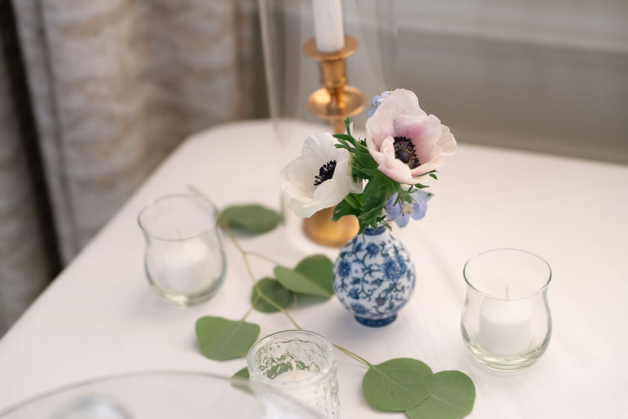 Amber and Sam exchanged vows at the lovely Pier 22 restaurant located in Bradenton - with stunning marina views and water views their wedding was a celebration of elegance paired with romantic florals. Bride choice of flowers - light blue delphiniums, black and white anemones, delicate spray roses, veronica and tweedia. Their ceremony took place in the lovely outdoor garden at the restaurant and the celebration continued in a private room with lovely touches of decor with blue and white accents and florals.