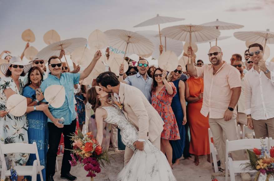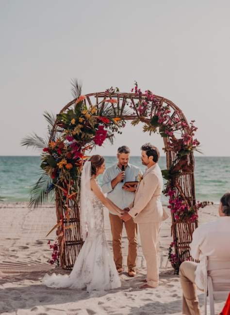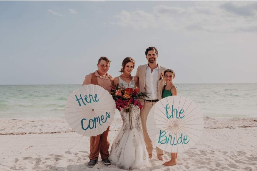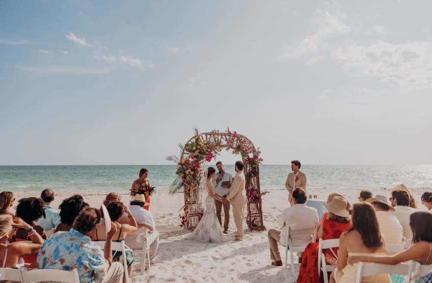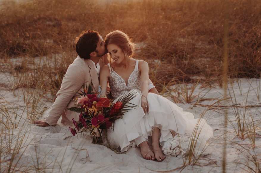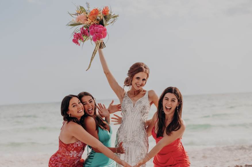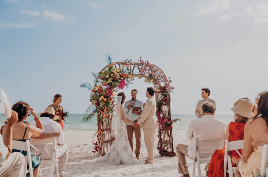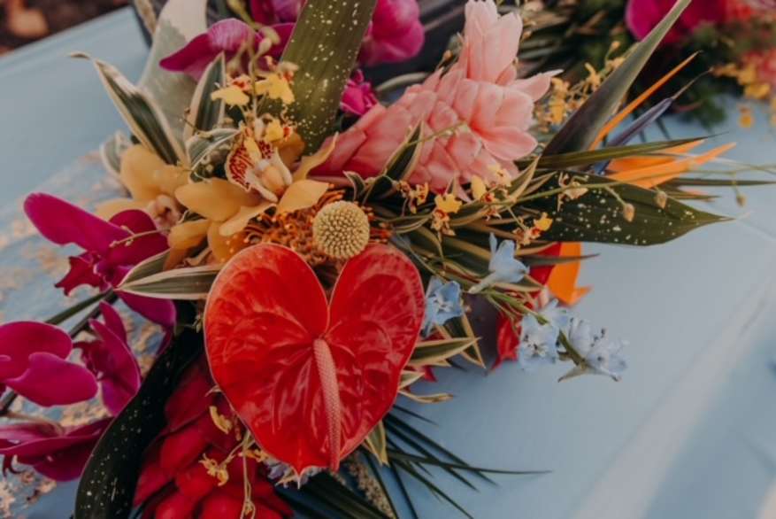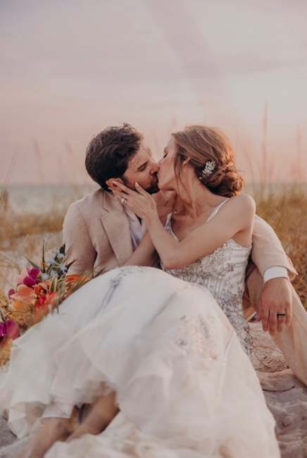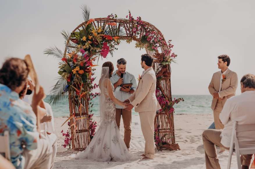 Venetian Flowers provided stunning fresh flowers and wedding rentals for Sara and Gerald's magical wedding at the breathtaking Zota Beach Resort on Longboat Key, Florida. The couple's special day was transformed into a tropical paradise with lush arrangements displayed on tall gold stands and unique tropical creations featuring driftwood accents. The wedding rentals from Venetian Flowers added an extra touch of elegance to the celebration. Rented peacock chairs provided a luxurious seating option for the newlyweds, while a shoe valet ensured guests could easily kick off their heels and dance the night away. Lanterns adorned with beautiful blooms added a romantic ambiance to the evening. Venetian Flowers' attention to detail and creativity truly made Sara and Gerald's wedding day unforgettable. The combination of fresh flowers, tropical accents, and elegant rentals created a picture-perfect setting for their special day at the Zota Beach Resort.